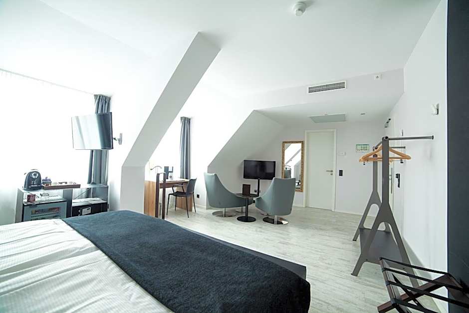 The spacious double room provides air conditioning, a mini-bar, as well as a private bathroom featuring a shower and a hairdryer. This double room features a safe deposit box, parquet floors, flat-screen TV with satellite channels, as well as wine/champagne for guests.